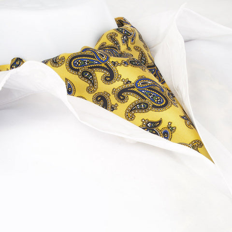 Gold Large Paisley Twill Silk Self Tie Cravat