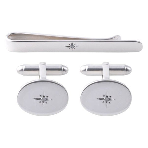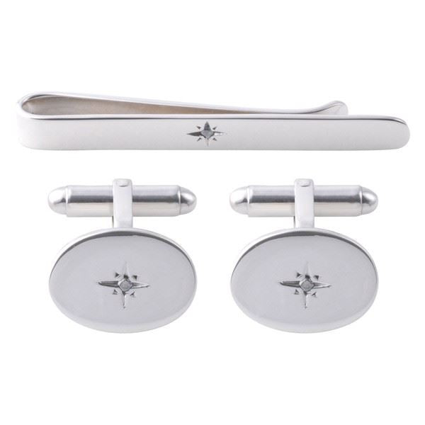 Our Sterling Silver Diamond Tie Slide and Cufflink Set is made from genuine 925 sterling silver and diamonds. The diamond is set in a starburst affect which gives the illusion of a largr stone! Smart for the office, special for an evening out or perfect just to add a little sparkle to your outfit. Price includes free gift box. Dimensions - 54mm x 6mm; 18mm x 13mm