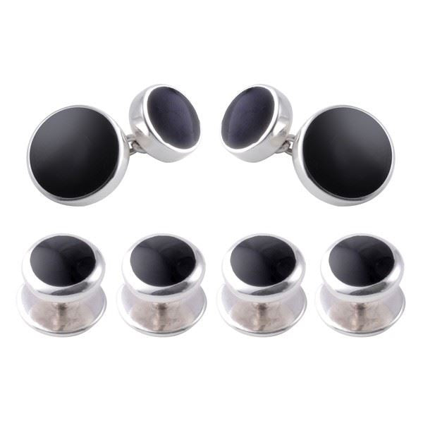 Our Sterling Silver Onyx Shirt Studs and Cufflink Set is made from genuine 925 sterling silver.