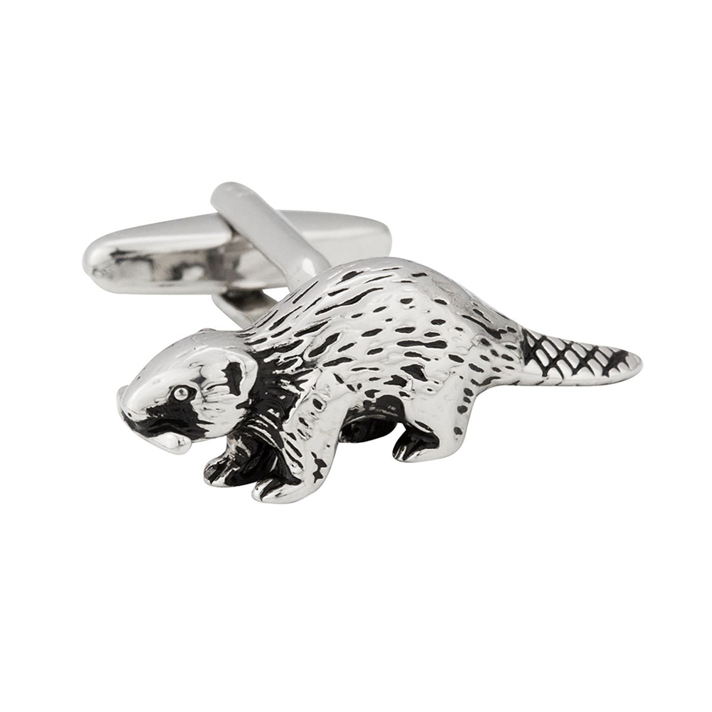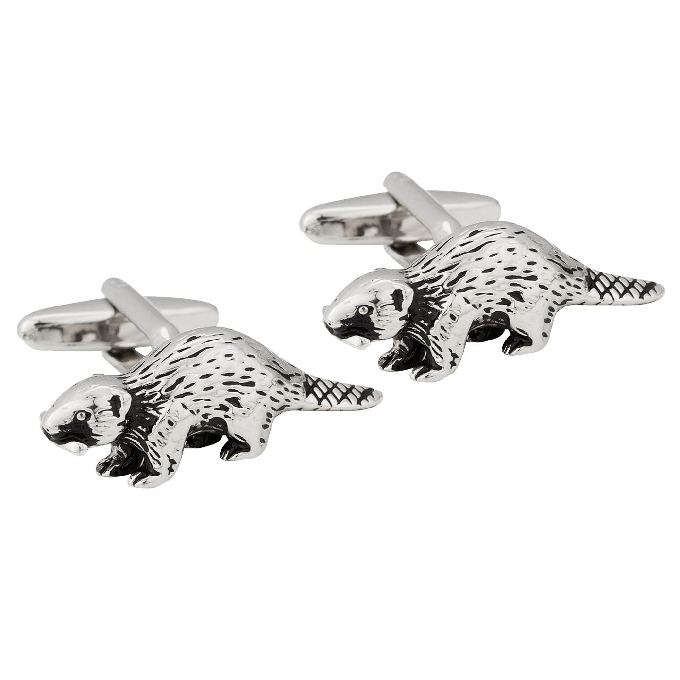 Polished rhodium beaver cufflinks set on a strong swivel clasp.  Fine detailing and quality shown throughout, a fantastic design and a great addition to our store. Cufflink box included in sale.