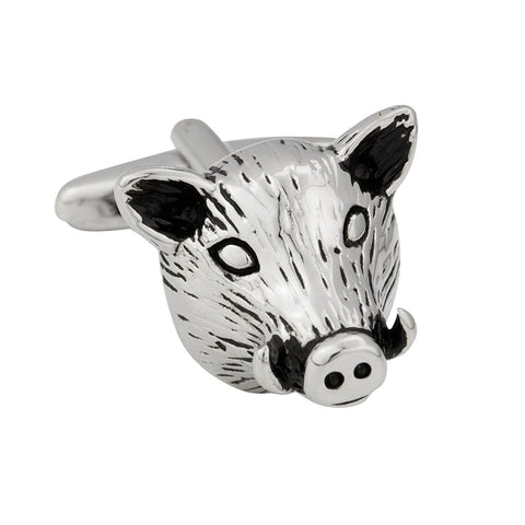 Boar Head Cufflinks. Hand crafted to show exceptional detailing throughout, these polished rhodium cufflinks show great value and make the perfect gift. Cufflink box included in sale.