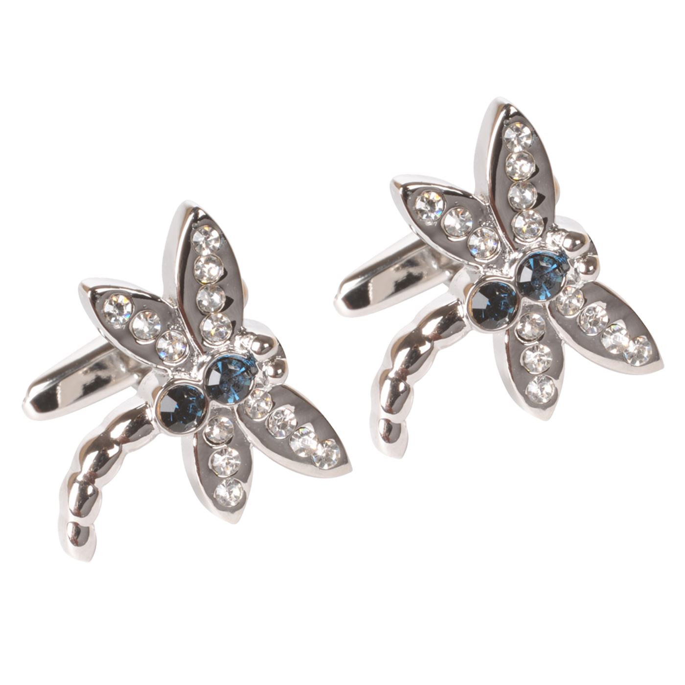 Dragonfly Cufflinks with white and blue encrusted crystals. Very nice quality shown throughout these cufflinks are sure to look exceptional on the cuff. Cufflink box included in sale but if your buying as a gift why not upgrade to an engraved giftbox to include a special message!