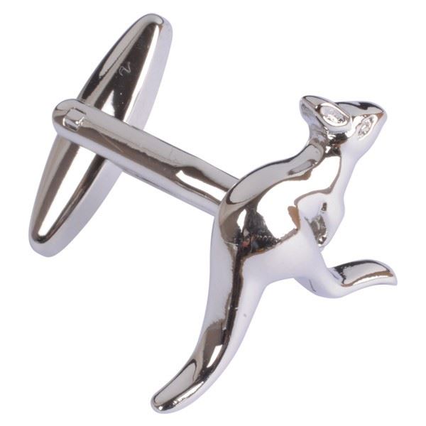 Kangaroo Cufflinks. Crafted with the finest detailing and finished with a polished rhodium these excellent Kangaroo Cufflinks are sure to give you a jump start in the mornings! Perfect for any Australian! Come complete with their own luxury gift box.