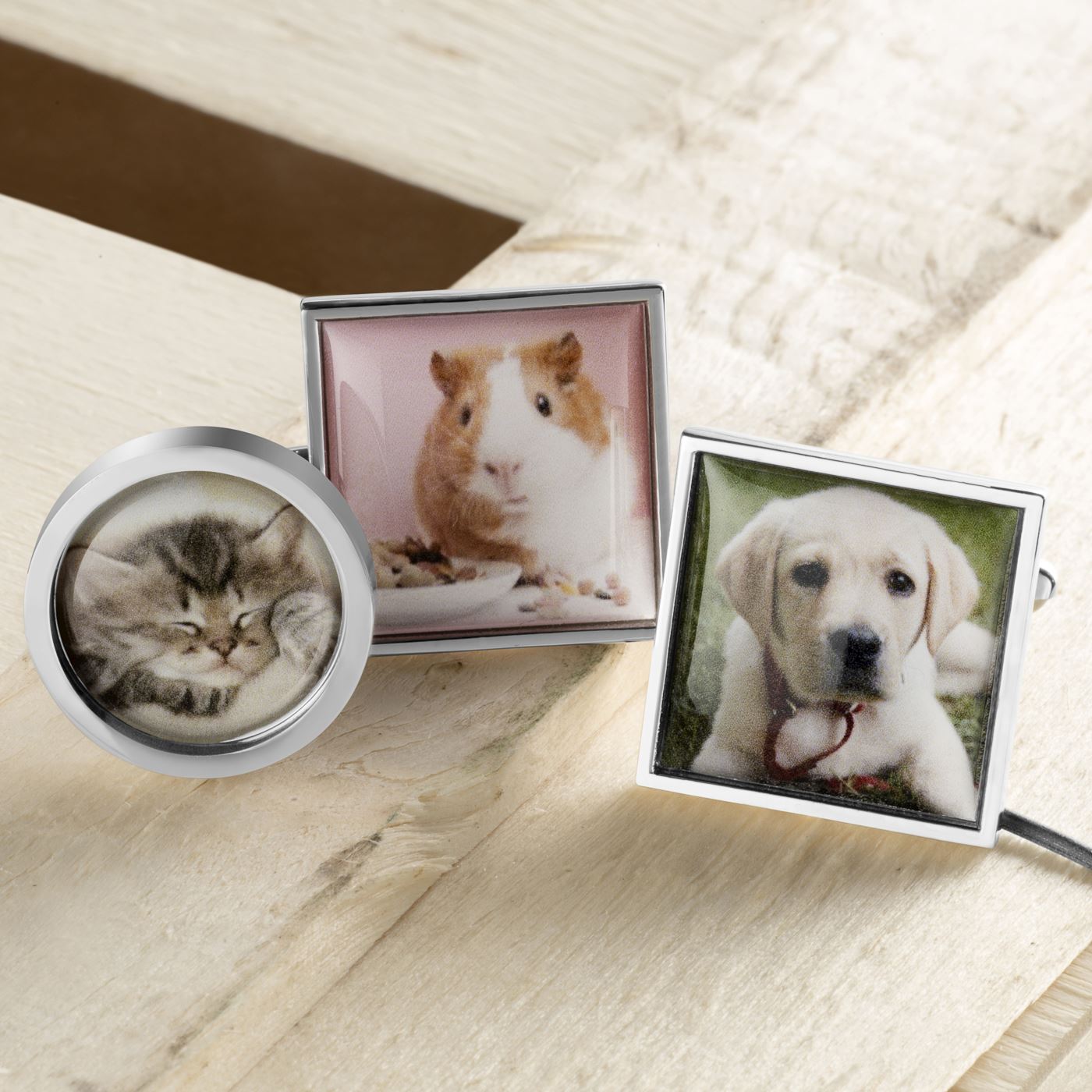 Create your own cufflinks with any photo or image of a pet or animal. Simply upload your image below, choose the shape you'd prefer and our experienced team will do the rest. Cufflink box included in sale but if you're buying as a gift why not upgrade to an engraved giftbox to include a special mesage.