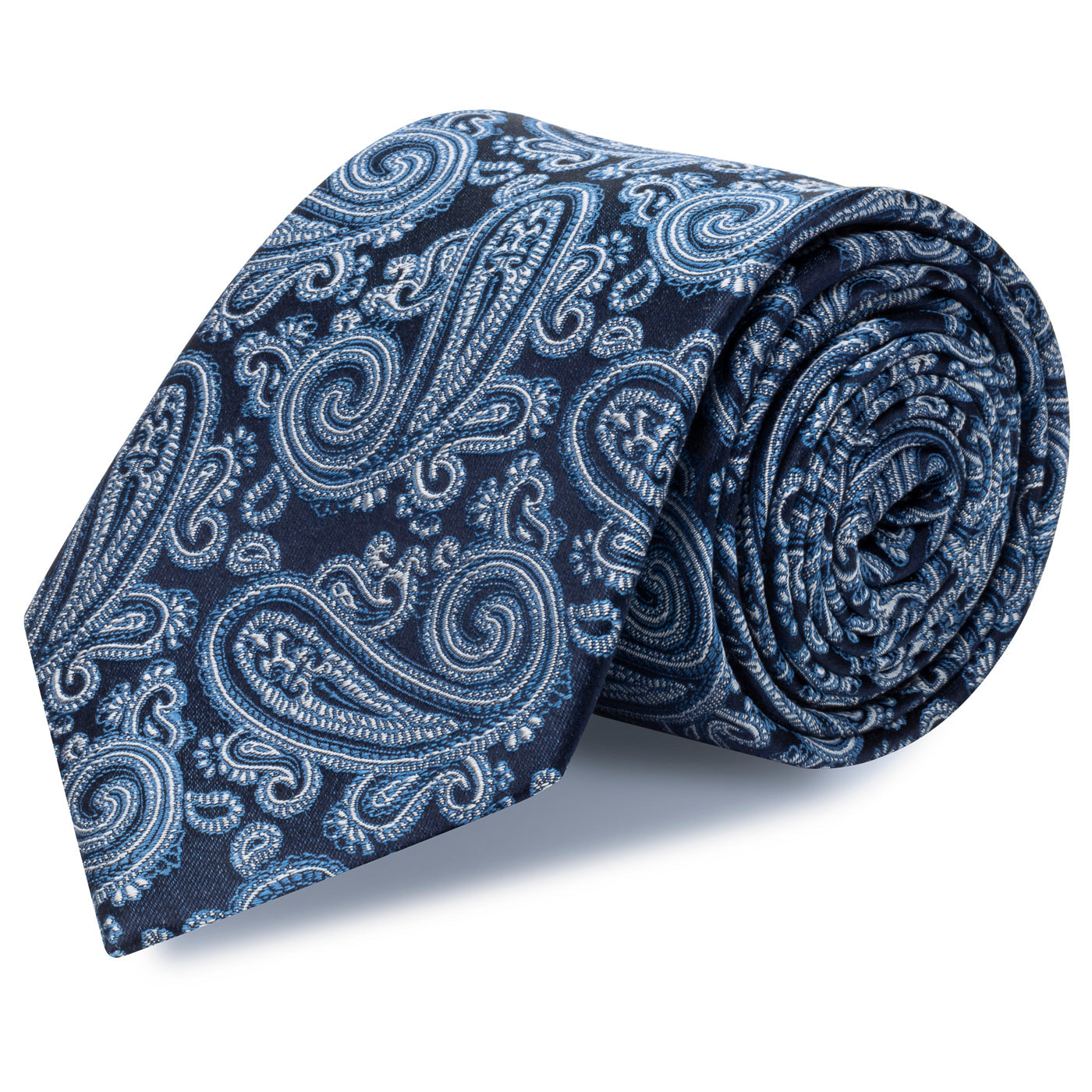 Blue paisley luxury silk tie made using only the finest silk, this classic paisley tie will look stunning with any shirt and suit combination.100% Silk Dimensions: 8.0cm x 145cm
