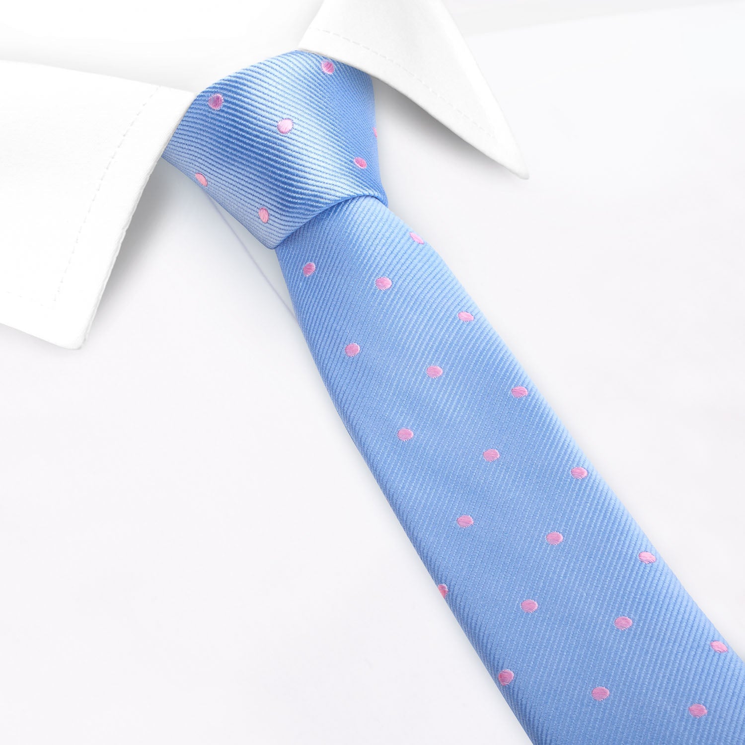 Blue and Pink Polka Dot Woven Silk Tie - This classic polka tie is a great addition to your tie collection. Made using 100% luxury woven silk and featuring a timeless spotted design. 100% Silk Dimensions: 5.5cm x 148cm