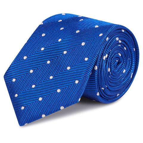 Royal Blue Aztec Polka Dot Silk Tie - Add some textured patterns to your tie collection with this timeless 100% woven silk tie.Perfect for all special occasions or smart business wear.Made using 100% Woven Silk and Hand Finished Dimensions: 8.0cm x 145cm
