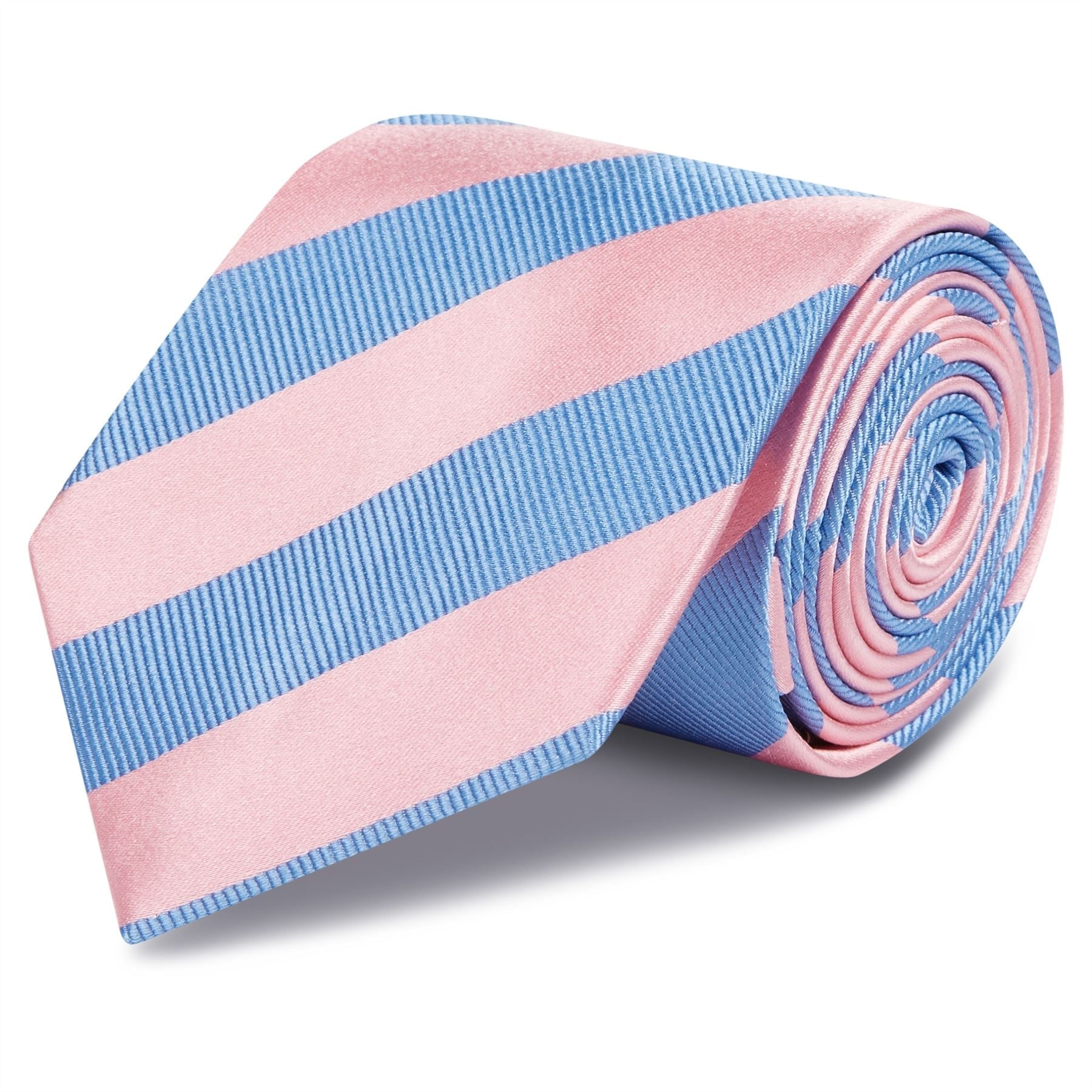 Pink and Blue Woven Striped Silk Tie Add some stripes to your smart wardrobe with this classic staple.Featuring a 100% woven silk striped design, this is a great value tie that can be worn year after year. 100% Silk Dimension: 8.3cm x 148cm