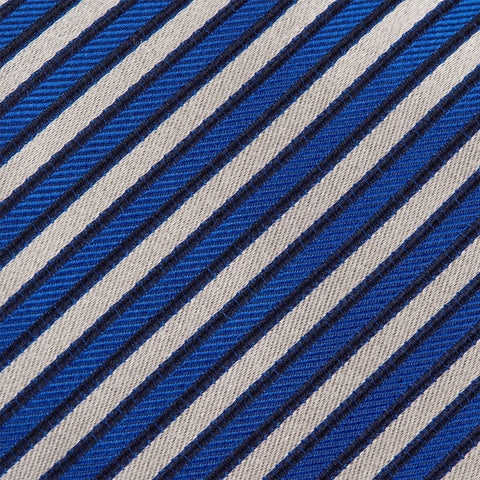Blue and White Striped Luxury Woven Silk Tie