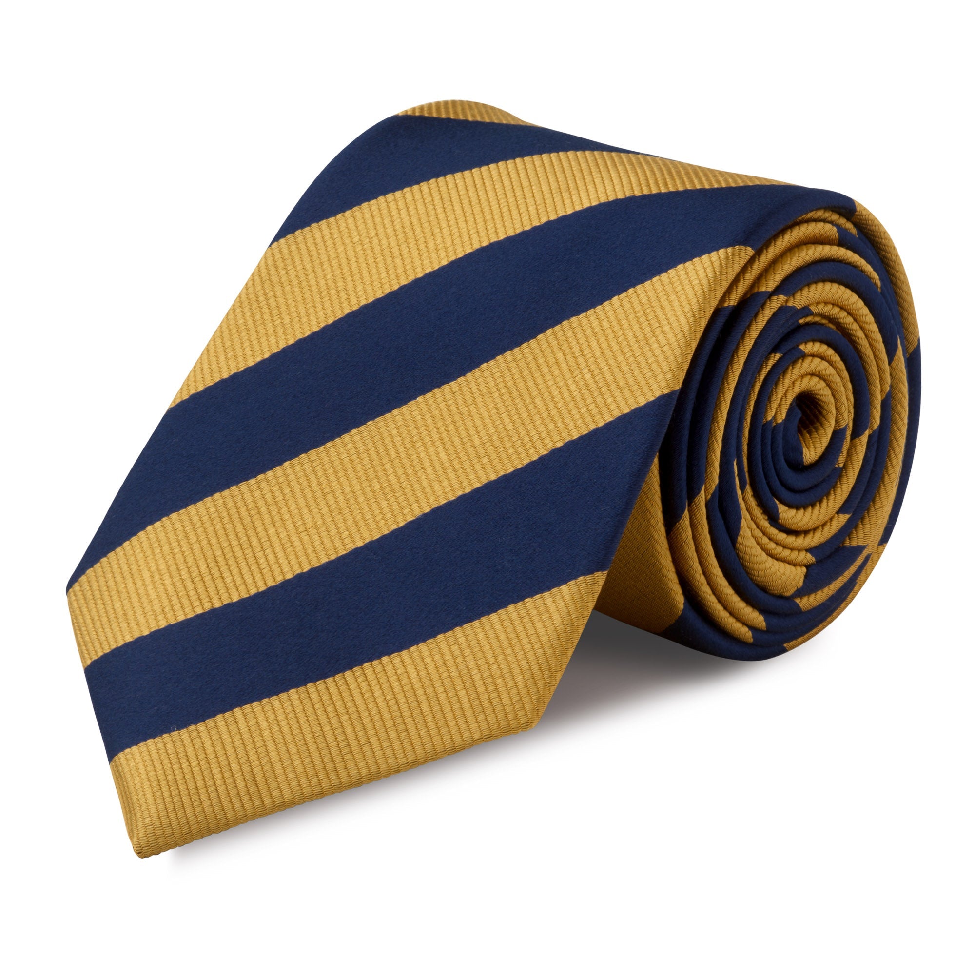 Navy and Yellow Striped Woven Silk Tie - Made using 100% woven silk, this classic striped tie is a fantastic addition to your smart wardrobe that can be worn season after season. 100% Silk Dimension: 8.0cm x 148cm