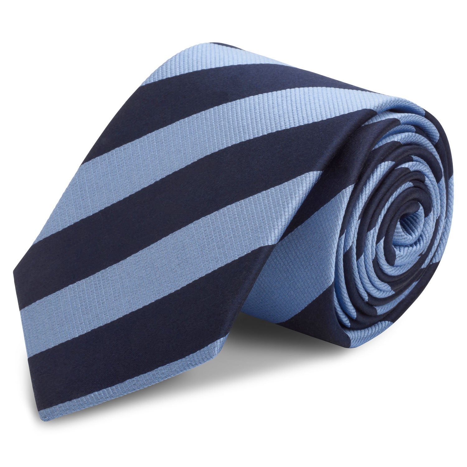 Navy and Blue Striped Silk Tie - Made using 100% luxury silk and featuring a classic wide stripe throughout. 100% Silk Dimensions: 8.0cm x 148cm