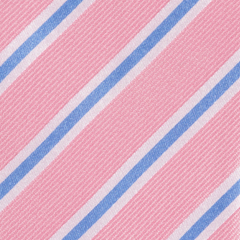 Pink Woven Silk Tie With Blue and White Stripes - Luxury pink woven silk tie with blue and white stripes, suitable for both business and special occasions. The 100% woven silk gives the tie a more textured look, fantastic quality shown throughout. 100% Silk Dimensions: 8.0cm x 148cm