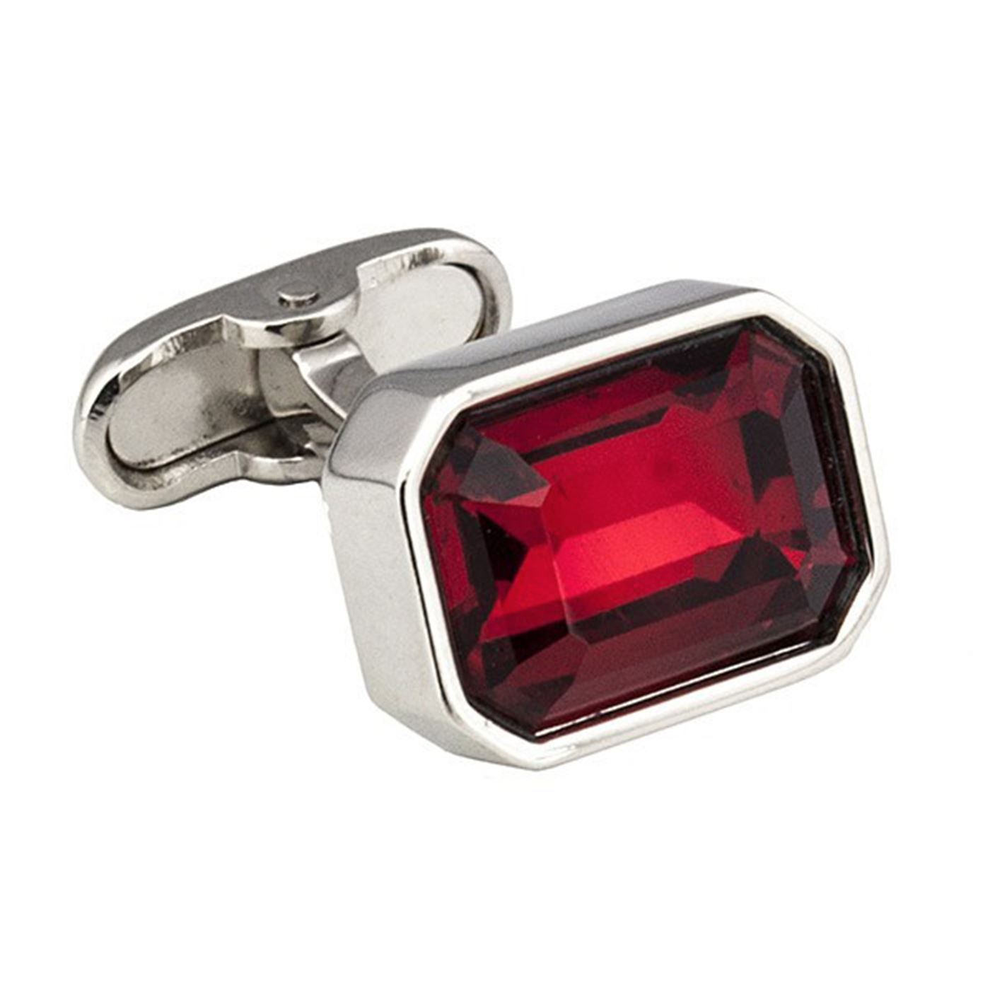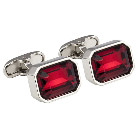 Red crystal rectangular cufflinks. Superb quality shown throughout, exclusive to us from our in house designer. Rhodium cufflinks set on a strong swivel clasp with a sparkling red crystal to create an executive look. Cufflink box included in sale. Dimensions - 16mm x 12mm