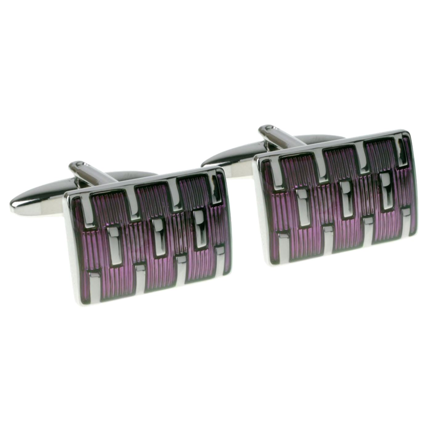 These acrylic and rhodium cufflinks are a popular retro choice! The alternating rhodium bars cross the purple acrylic inlay, which has a slight comb effect. These cufflinks come complete with a complementary display case, making them a perfact present.