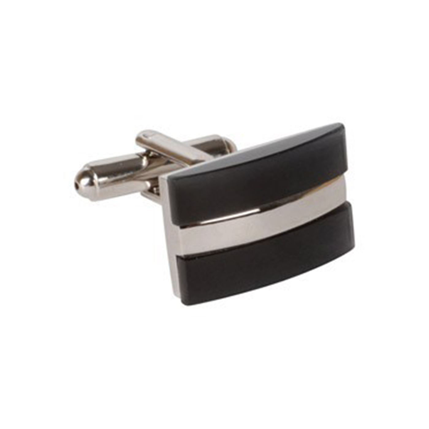 Jet black cufflinks with a central silver stripe that will look very smart on a crisp white shirt, a nice pair of cufflinks for anyone wanting to portray a smart and stylish appearance. Giftbox included in sale.
