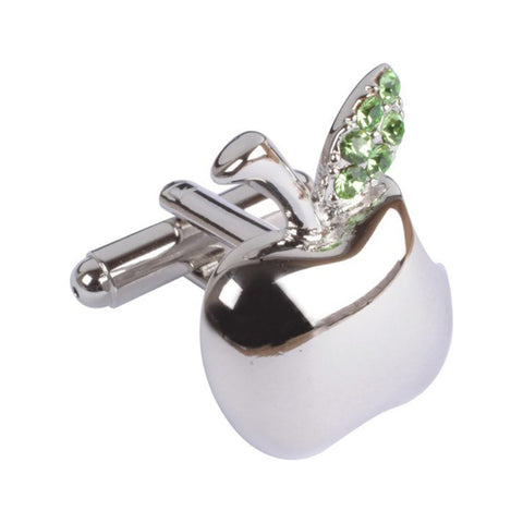 Silver plated apple cufflinks with green crystal leaf Detailing. Excellent quality and crafted using only the finest materials making this set of stunning apple cufflinks a must buy. They also come complete with their very own presentation box.