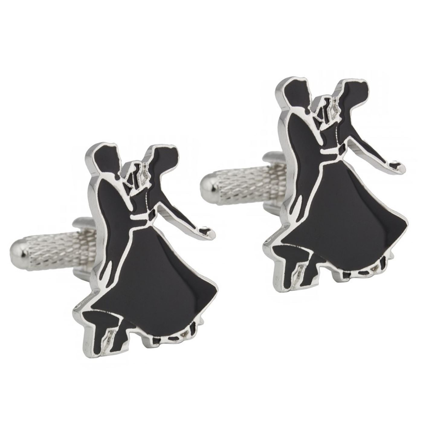 Rhodium ballroom dancing cufflinks with black enamel set on a strong swivel clasp. Excellent craftmanship and detailing shown throughout. Cufflink box included in sale but if you're buying as a gift why not upgrade to an engraved giftbox to include a special message.