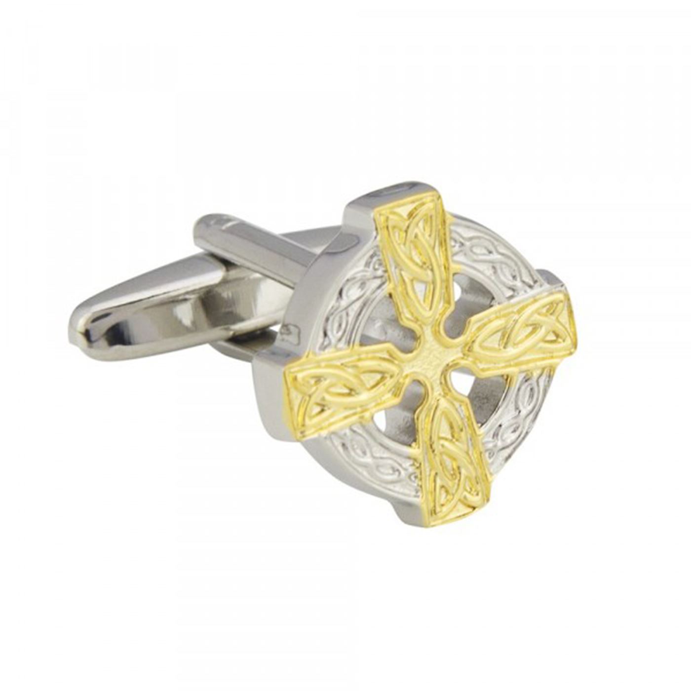 Gold and silver plated celtic cross cufflinks set on a strong swivel clasp. Fantastic quality shown throughout and cufflink box included in sale.