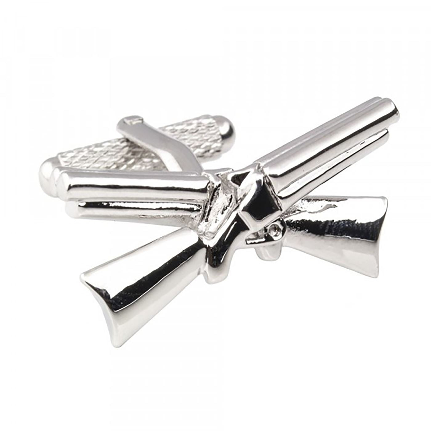 Crossed shotgun cufflinks, rhodium plated set on a strong swivel clasp, nice quality shown throughout. Cufflink box included in sale but if buying as a gift why not upgrade to an engraveable giftbox to include a special message. Dimensions - 29mm x 18mm