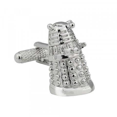 Dr Who Dalek Cufflinks in polished rhodium and set on a strong swivel clasp, fantastic quality shown throughout. Excellent detailing, perfect for any Dr Who fan. Cufflink box included in sale but if buying as a gift why not upgrade to an engraved gift box to include a special message. Dimensions - 14mm x 21mm