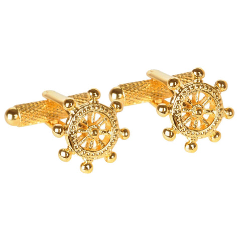 Gold plated ship wheel cufflinks set on a strong swivel clasp. Unique design to The Cufflink Store these cufflinks arrive in a free presentation box but if buying as a gift why not upgrade to an engraved giftbox to include a special message!