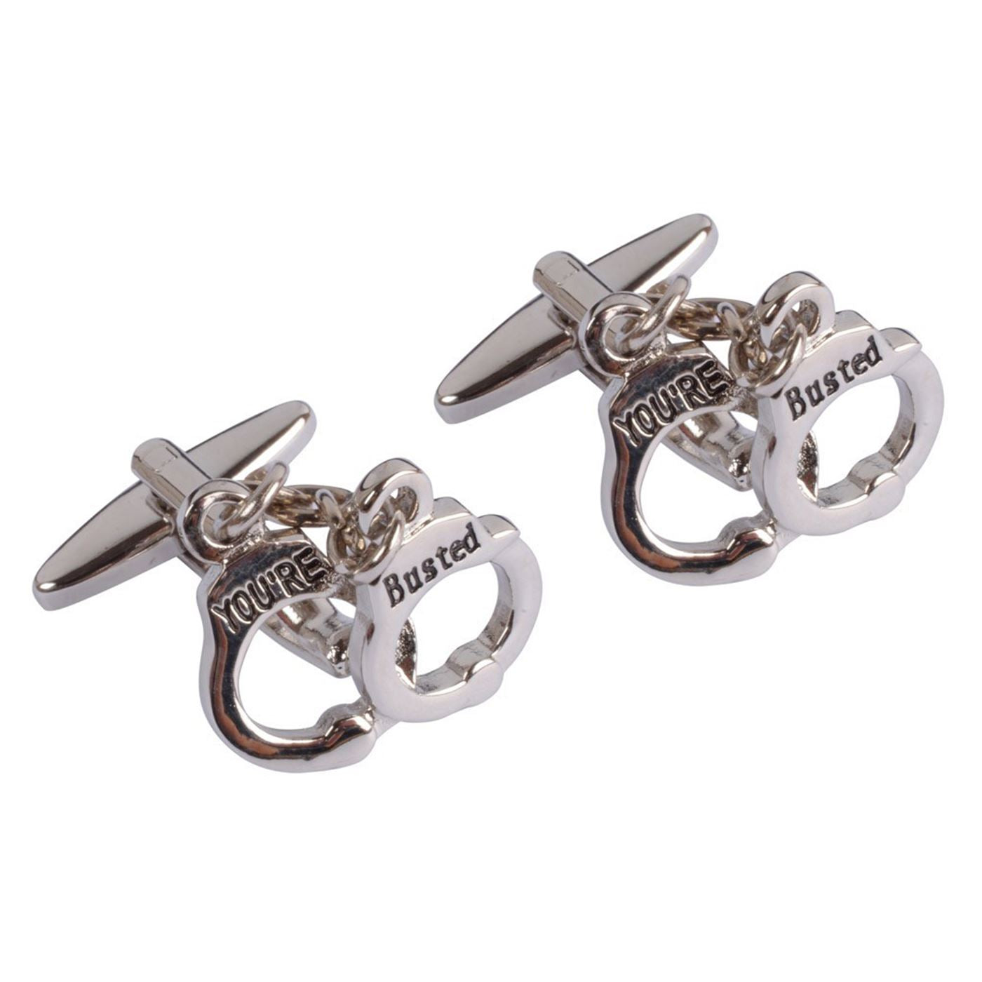 Nick Yourself a Bargain with these Excellent "You're Busted" Cufflinks. The solid rhodium has been shaped perfectly to replicate handcuffs. Complete with a luxury case.