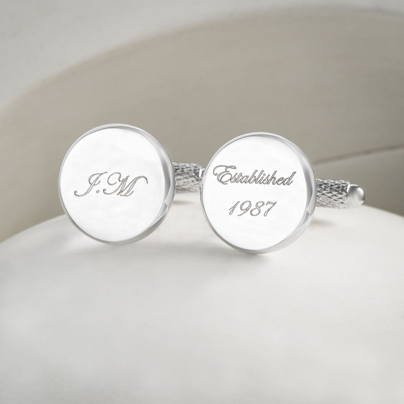 Luxury silver plated cufflinks that can be personalised to your specification. Enter your chosen initals and birth date and our team of professional engravers will do the rest. Cufflink box included in sale but you can also upgrade to an engraved giftbox to include a special message
