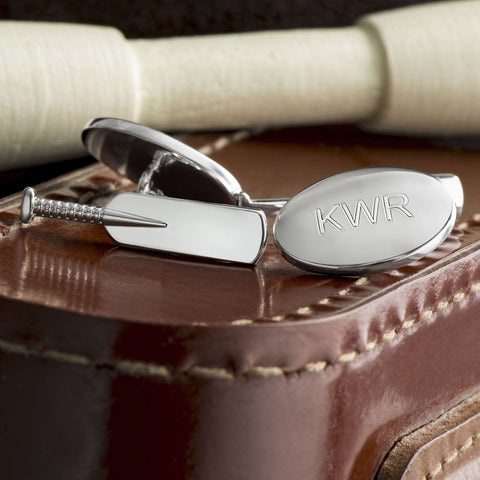 Silver plated cricket chain cufflinks, hand crafted to perfection, perfect for any cricket fan. Engrave up to 5 characters on each cufflink, please note the engraving will take place on the oval clasp. Giftbox included in sale.