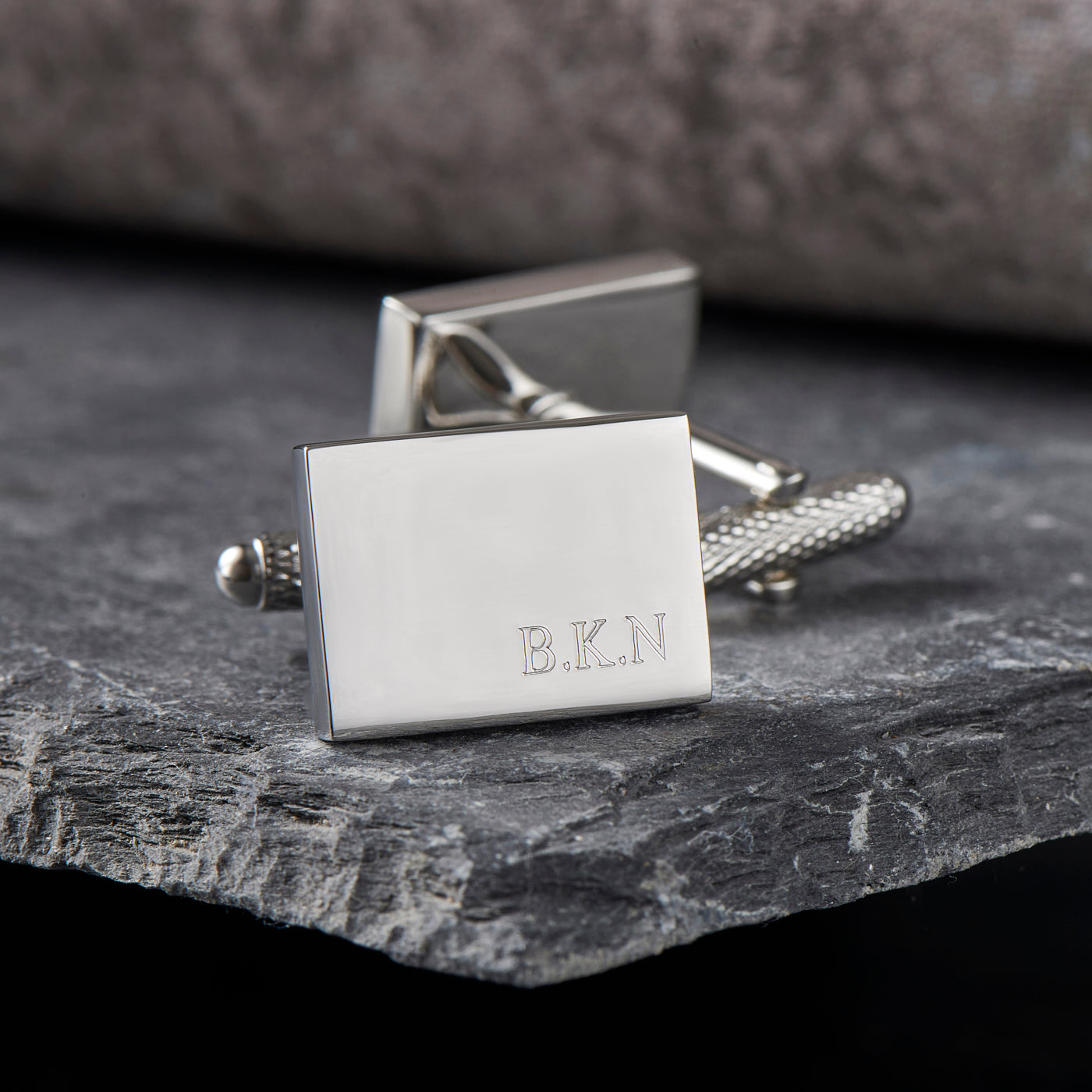 Luxury silver plated cufflinks that can be engraved to your specification. Engrave up to 4 initials on each cufflink in a font of your choice to make a fantastic personalised gift. Hand engraved in house by our team of professional engravers. Dimensions - 19mm x 14mm