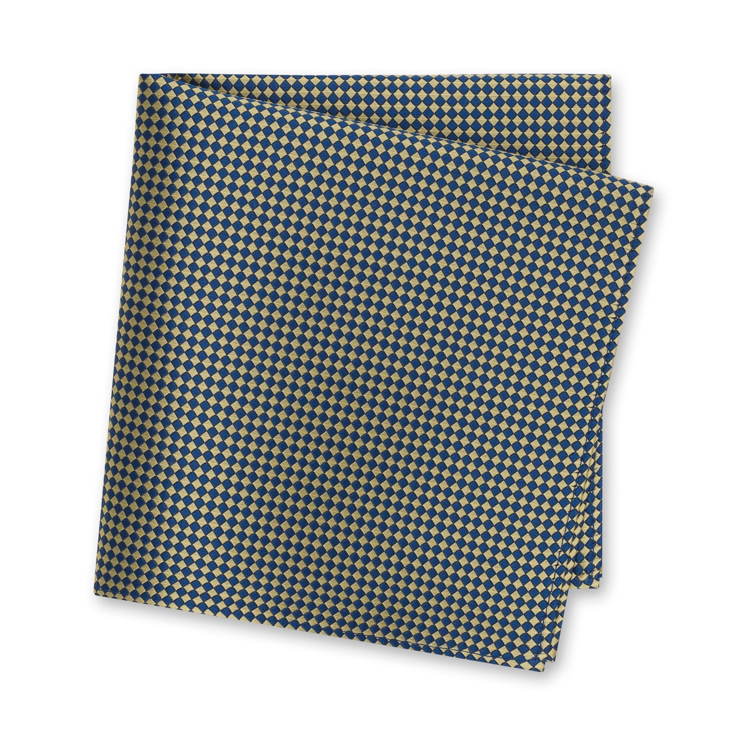 Gold & Navy Diamond Gridded Silk Handkerchief