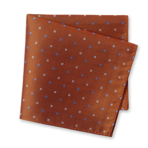Orange and Blue Flower Spot Silk Handkerchief
