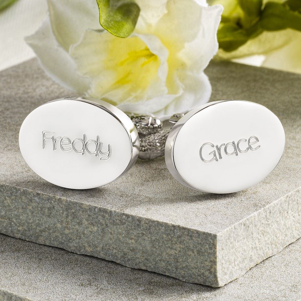 Child's Names Engraved Silver Oval Cufflinks Child's Names Engraved Silver Oval Cufflinks