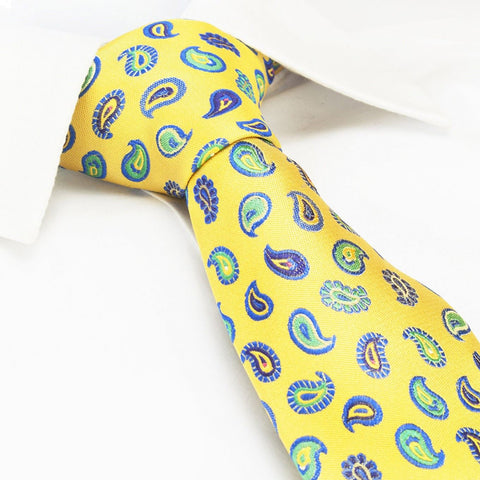 Gold Paisley Tear Drop Silk Tie Made using 100% luxury woven silk and featuring a classic tear drop paisley design throughout. This tie is perfect for weddings, special occasions or even for everyday smart wear. 100% Silk Dimensions: 8.3cm x 148cm