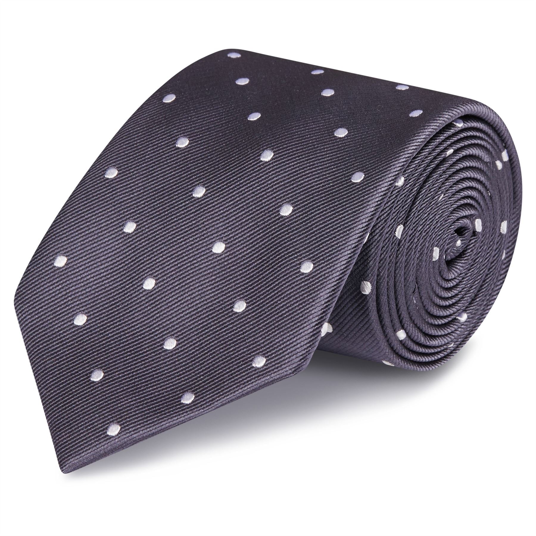 Charcoal Grey Polka Dot Silk Tie - This classic polka tie is a great addition to your tie collection. Made using 100% luxury woven silk and featuring a timeless spotted design. 100% Silk Dimensions: 8.0cm x 148cm
