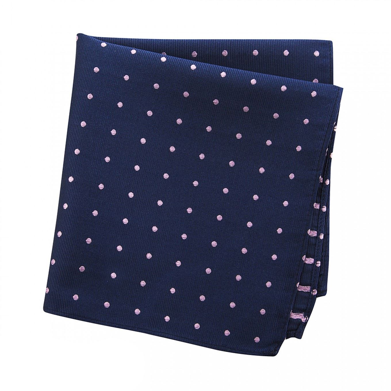 Navy & Pink Polka Dot Woven Silk Handkerchief