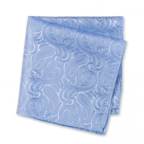 Pastel Blue Paisley Woven Silk HandkerchiefOur silk hankies are great to wear as every day smart dress, casual wear or as part as a matching set.Hand finished and dry clean only.100% SilkSize 12inch x 12inch (30cms x 30cms)