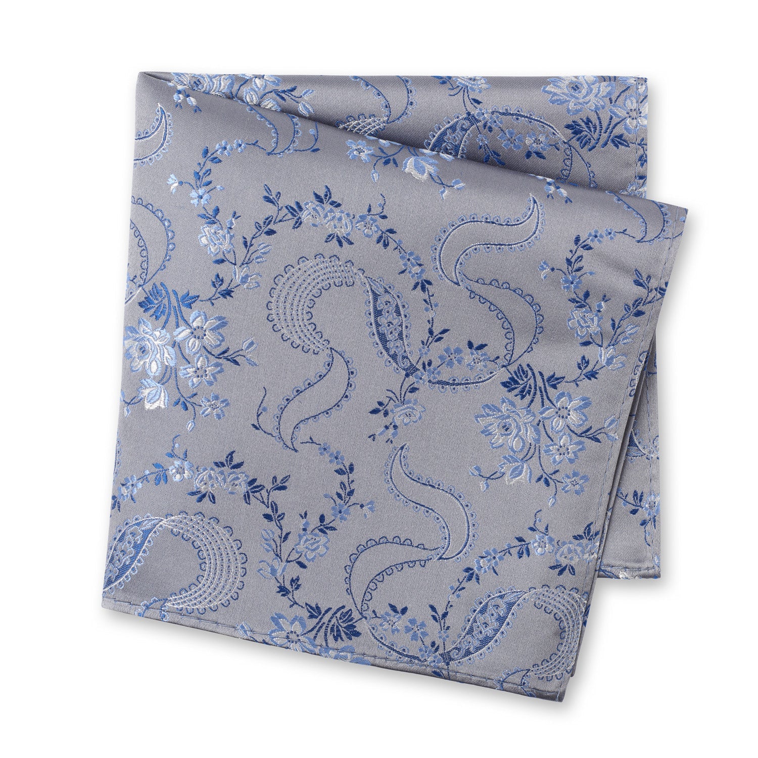 Silver & Blue Luxury Floral Silk Handkerchief