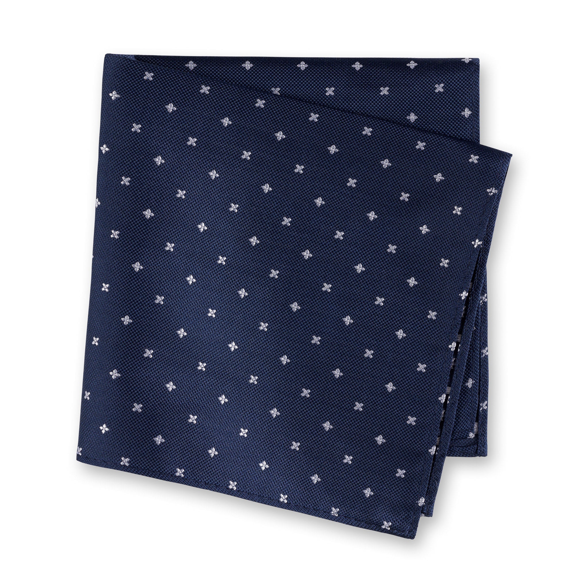 Navy & Silver Flower Spot Silk Handkerchief