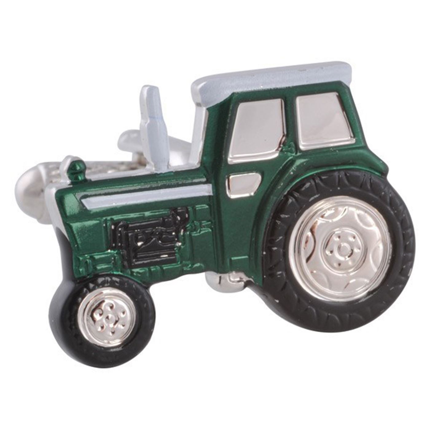 Rhodium Green Tractor cufflinks set on a strong swivel clasp. Very good detailing shown throughout make these tractor cufflinks ideal for anyone involved in farming. Presentation box included in sale so great to give as a present.