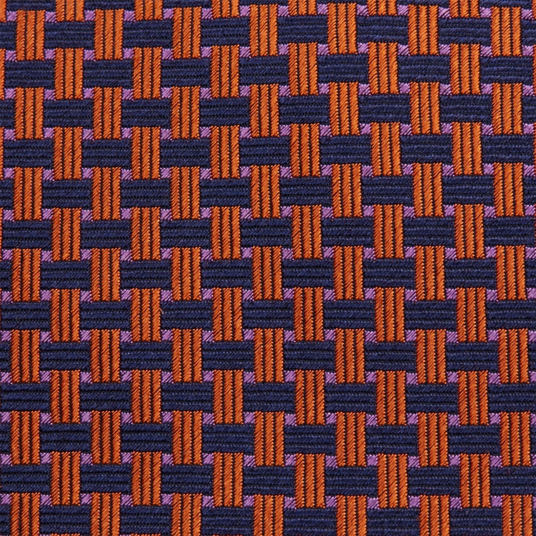 Navy and Orange Lattice Silk Tie Add some patterns to your tie collection with this timeless 100% woven textured tie. Perfect for casual or business wear this tie can be dressed up or down for any occasion.Made using 100% Woven Silk and Hand Finished Dimensions: 8.0cm x 145cm