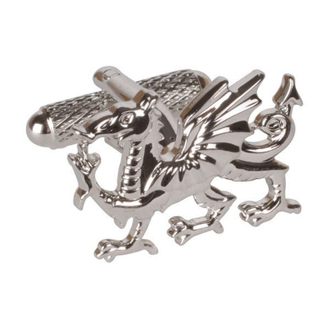 Rhodium plated Welsh Dragon cufflinks. High quality cufflinks with intricate detail, perfect for Welsh patriots. Complete with their own presentation box