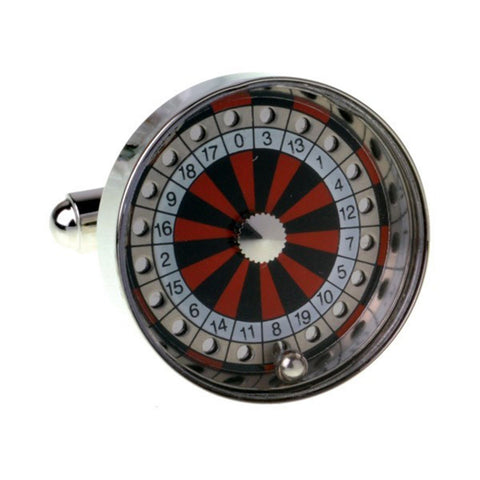 Roulette Wheel cufflinks that are great for the keen gambler or anyone wanting a change from the standard cufflink. Excellent quality and crafted with the finest detailing, also complete with their own giftbox. Change your luck today and spin the wheel. Dimensions - 19mm x 19mm