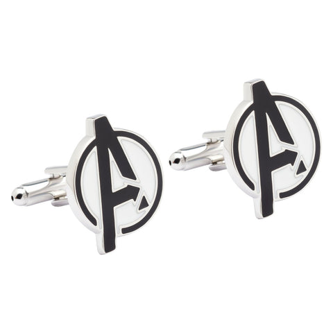 Avengers Enamel Cufflinks. Polished rhodium plated cufflinks set on a strong swivel clasp with enamel infilling. Luxury gift box included. Dimensions 16mm x 20mm