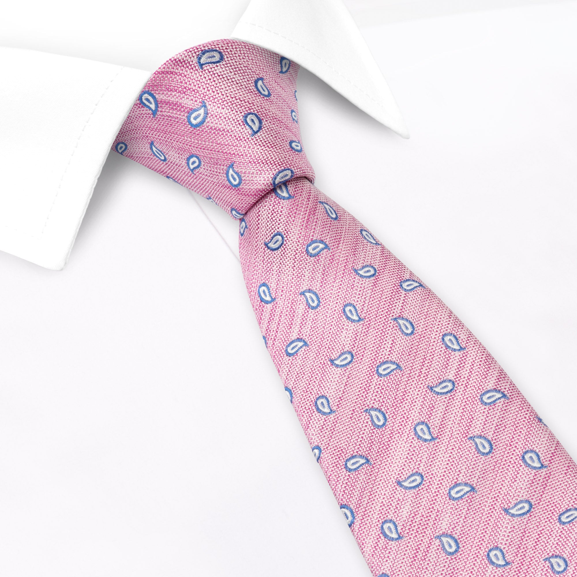 Pink Micro Paisley Woven Silk Tie - Add some classic paisley patterns to your tie collection with this timeless 100% woven textured tie. Perfect for business wear, special occasions and weddings. Made using 100% Woven Silk and Hand Finished Dimensions: 8.0cm x 145cm
