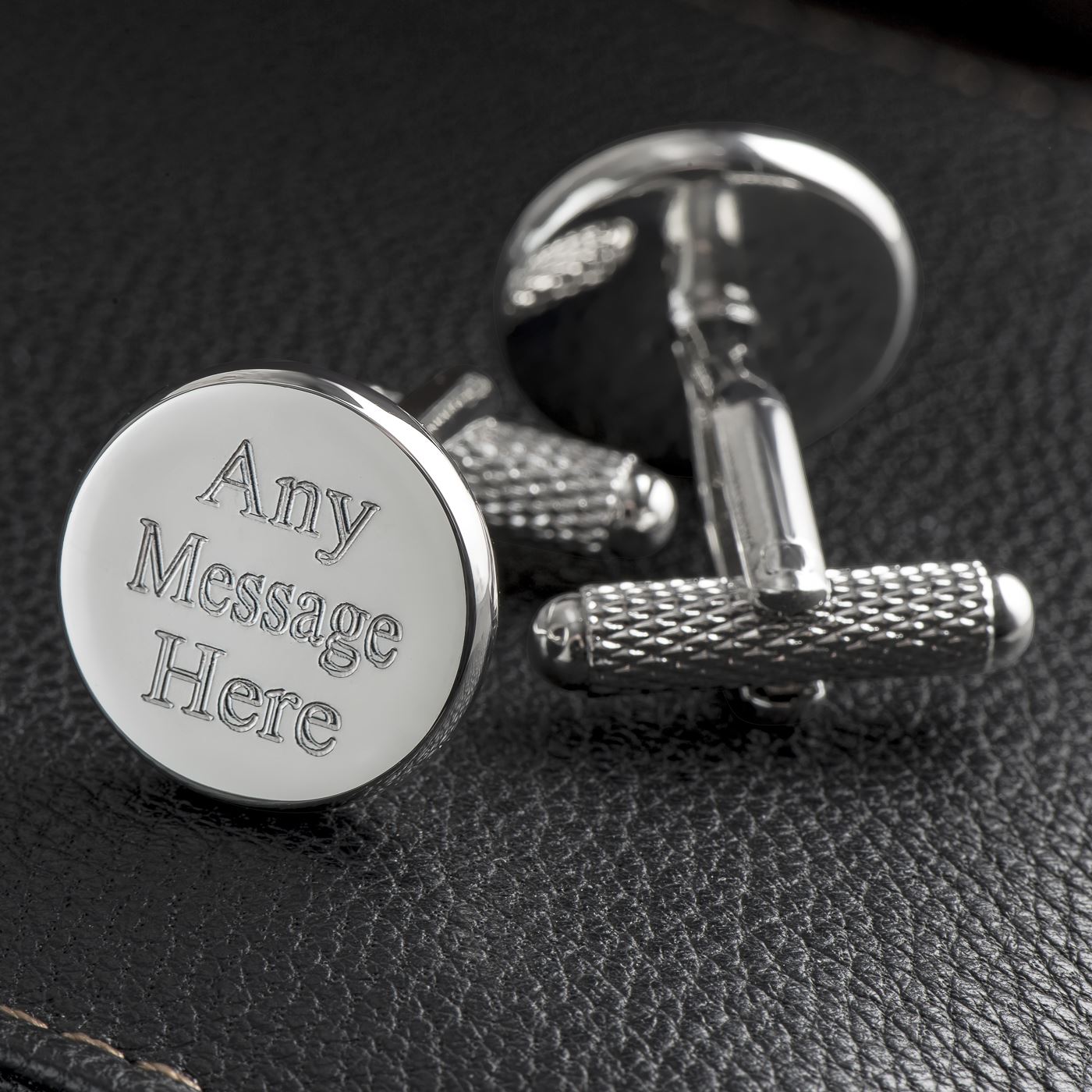 Luxury silver plated cufflinks that can be engraved to your specification. Engrave up to 30 Characters on each cufflink to make a fantastic personalised gift. Cufflink box included in sale but you can also upgrade to an engraved giftbox to include a special message.