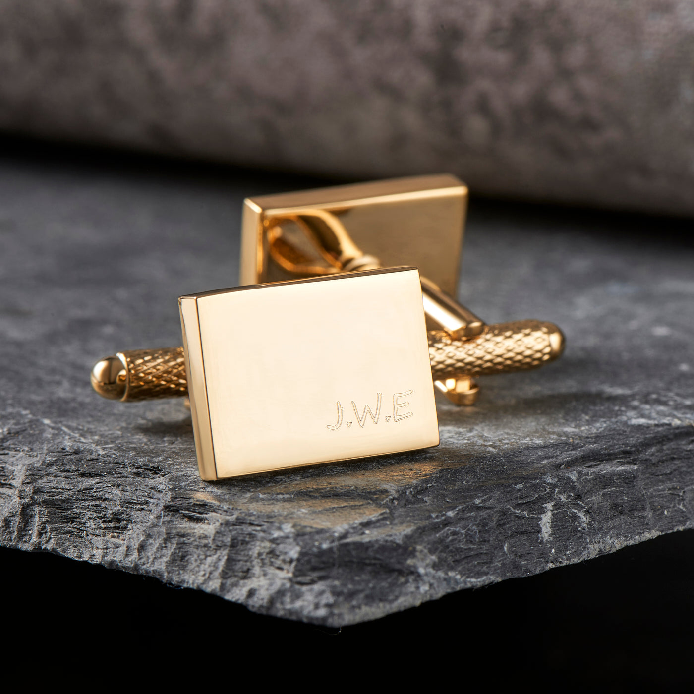 Luxury gold plated cufflinks that can be engraved to your specification. Engrave up to 4 initials on each cufflink in a font of your choice to make a fantastic personalised gift. Hand engraved in house by our team of professional engravers. Dimensions - 19mm x 14mm