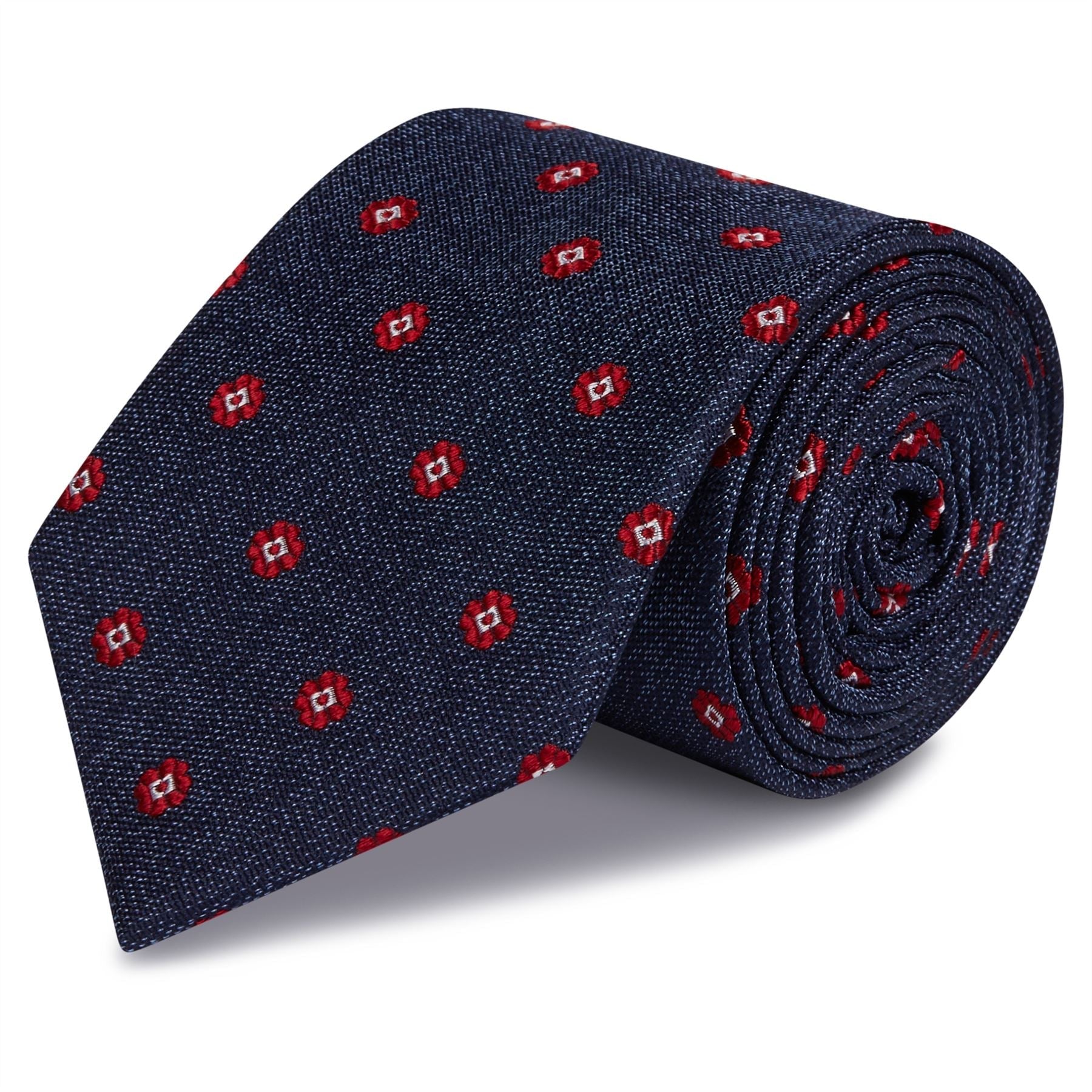 Navy and Red Textured Flower Spot Silk Tie - Add some classic floral spots to your tie collection with this timeless 100% woven textured tie. Perfect for casual or business wear this tie can be dressed up or down for any occasion.Made using 100% Woven Silk and Hand Finished Dimensions: 8.0cm x 148cm