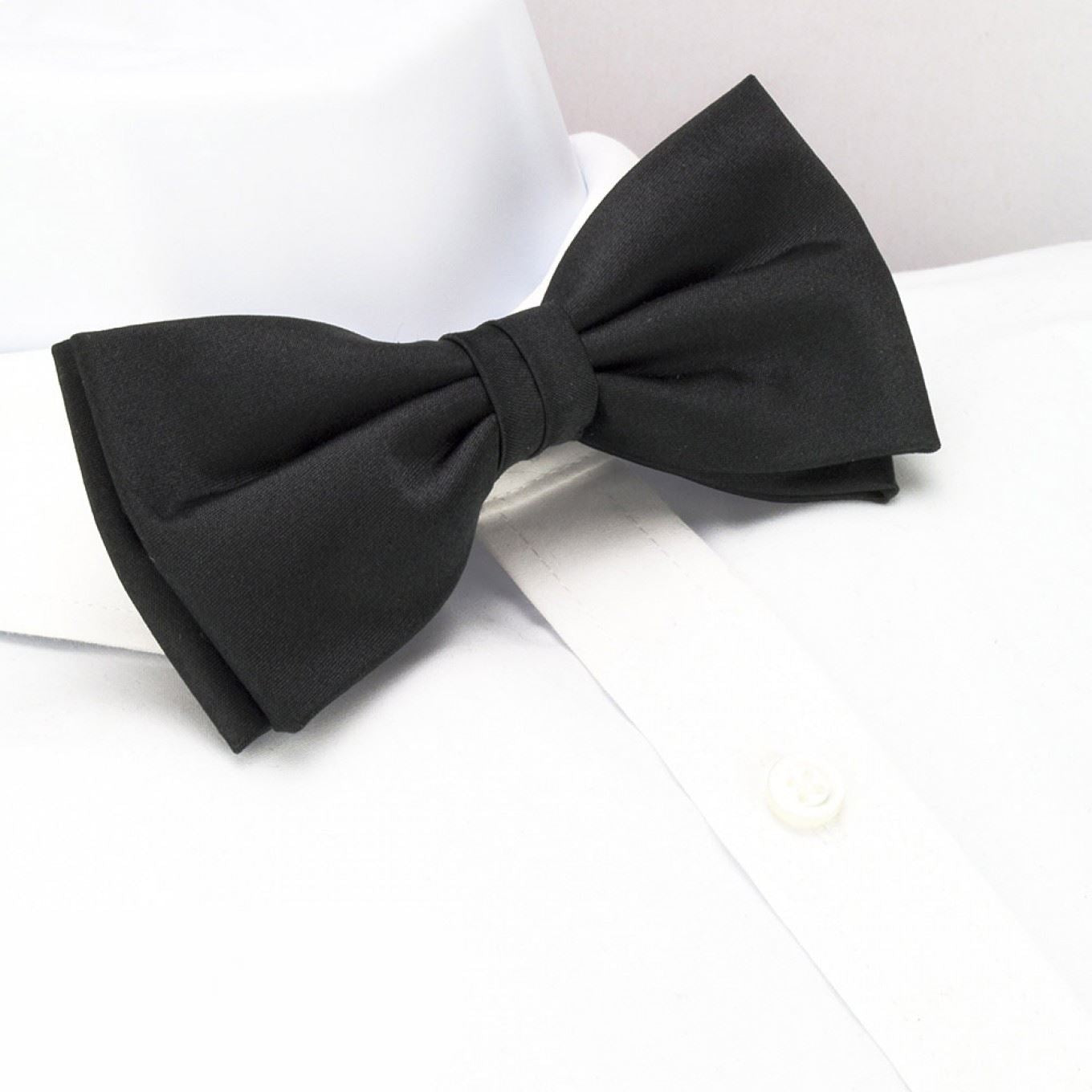 Pre-Tied Plain Black Silk Bow Tie Our luxury bow ties are perfect for any occasion. Made using 100% woven silk and featuring a collar adjuster to make sure they sit perfectly on your shirt. Pre-Tied100% Silk