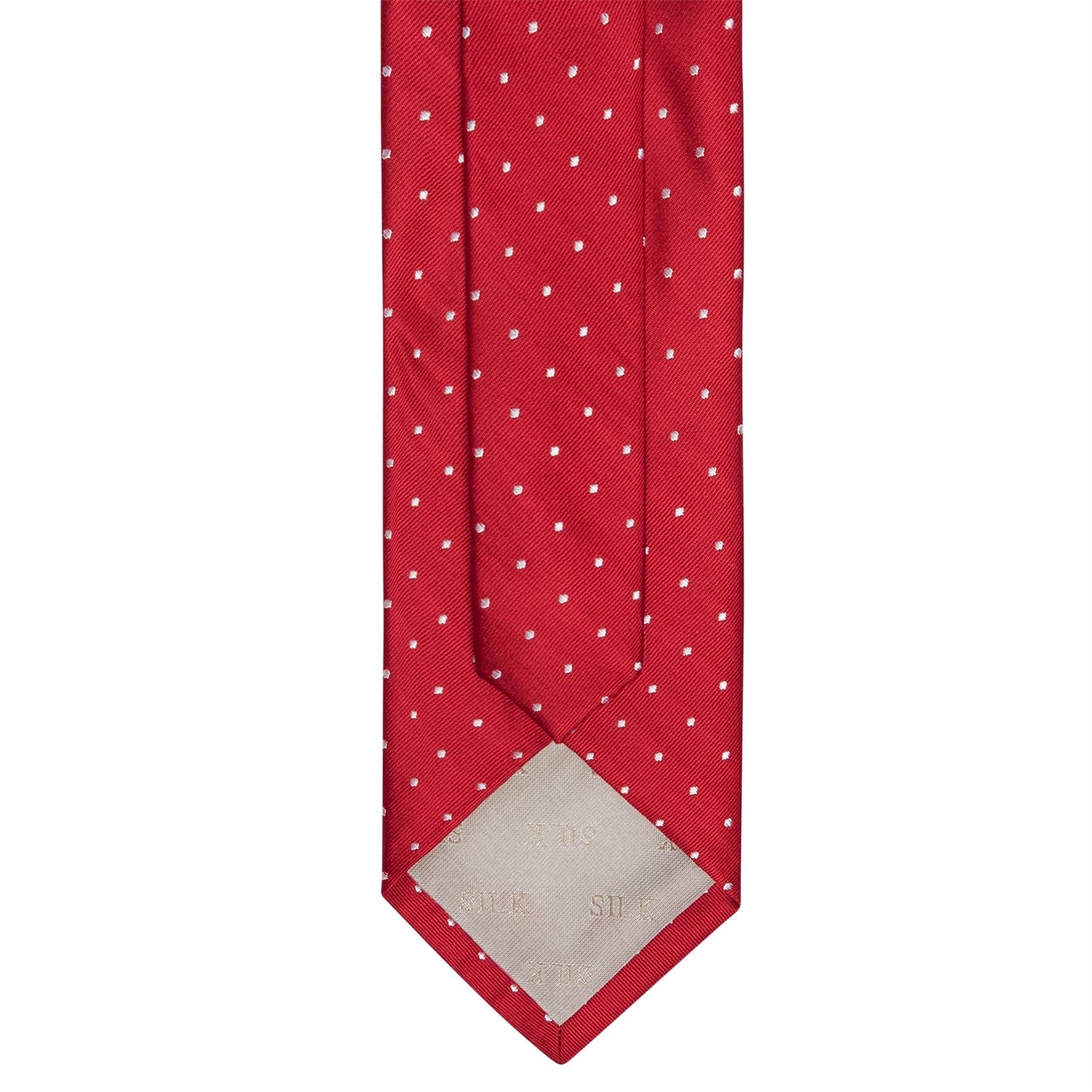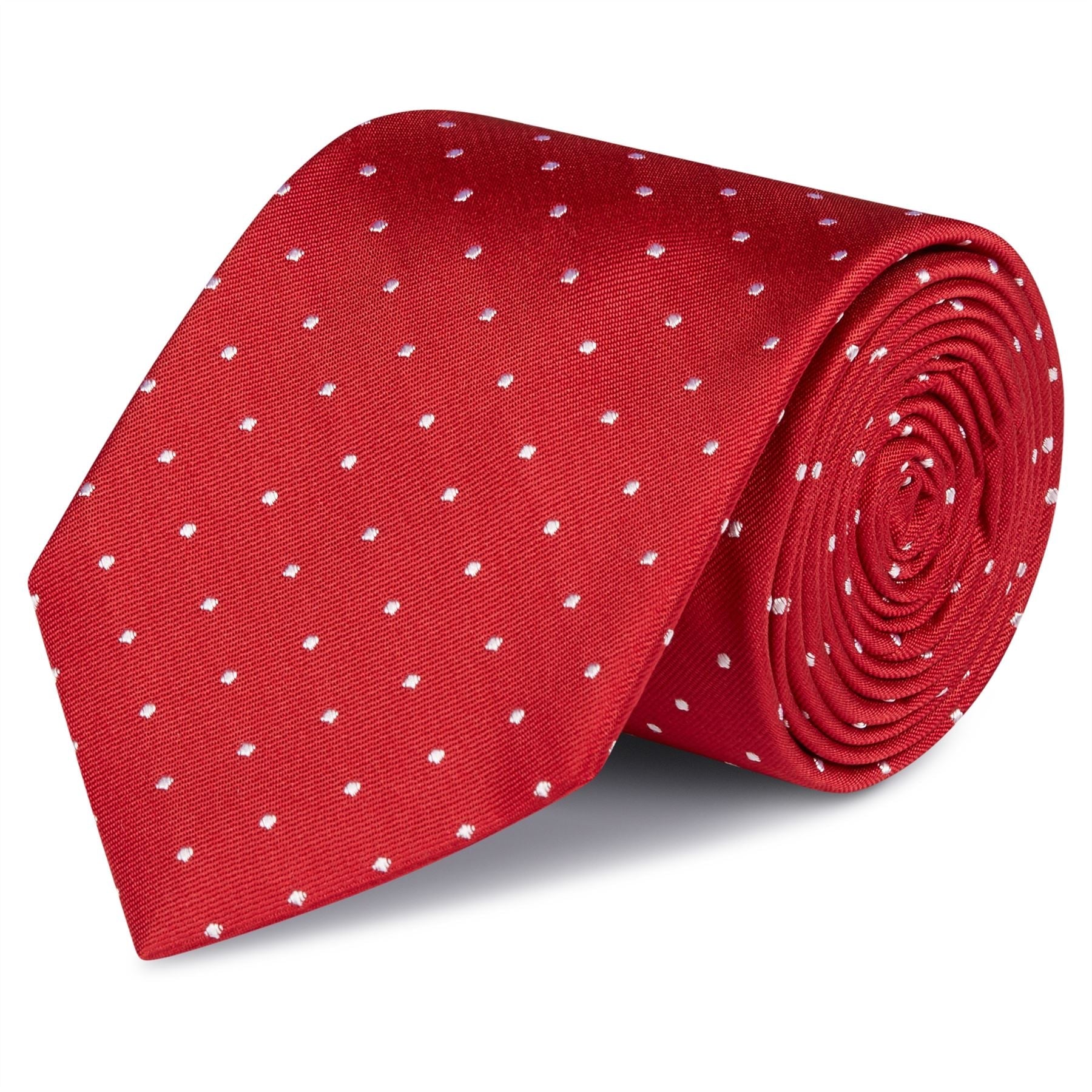 Red Polka Dot Woven Silk Tie - Luxury red polka dot woven silk tie, suitable for both business and special occasions. The 100% woven silk gives the tie a more textured look, fantastic quality shown throughout.100% Silk - Dimension: 8.3cm x 148cm