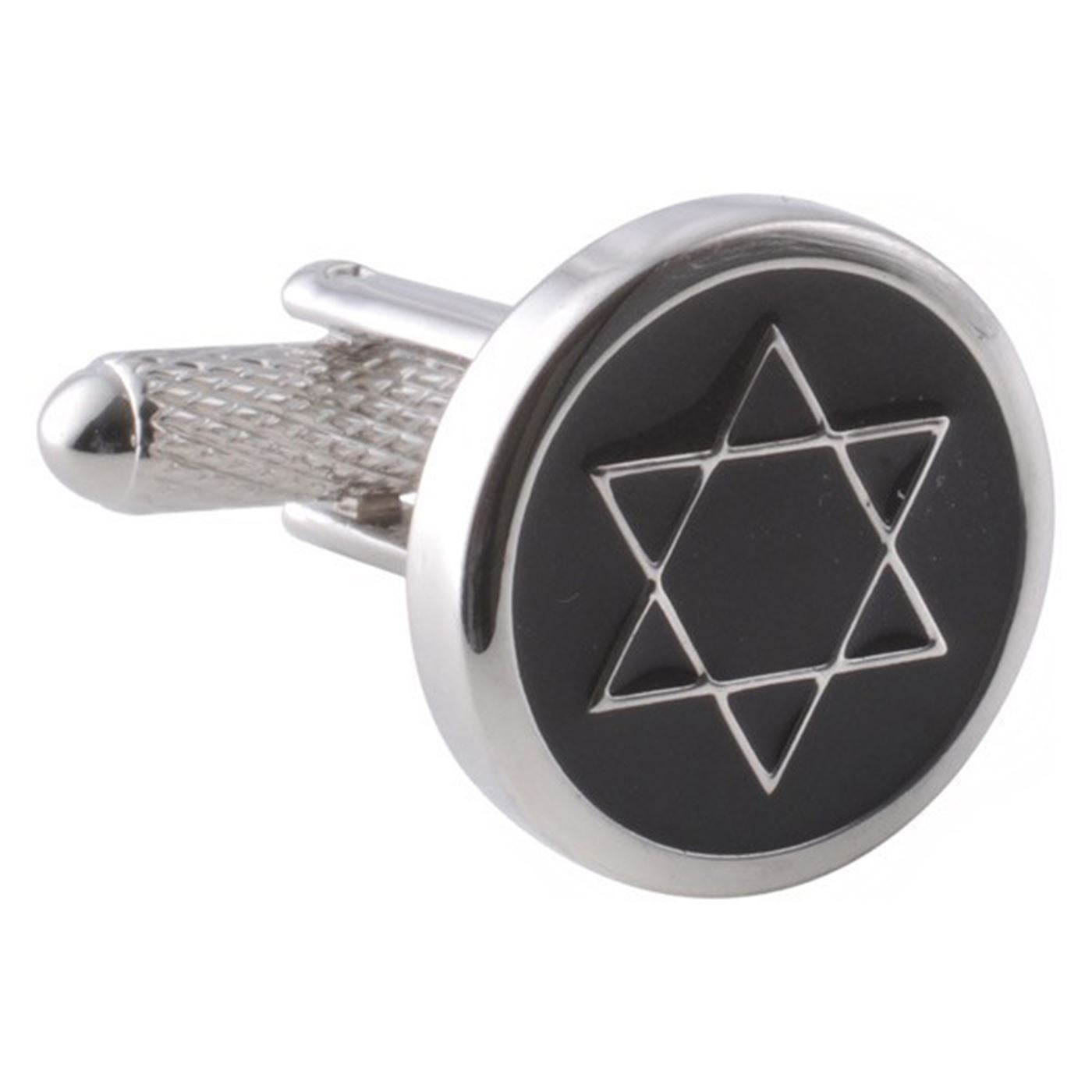 Rhodium plated black enamel star of David cufflinks, fantastic quality shown throughout, great value for money. Cufflink box included in sale but if buying as a gift why not upgrade to an engravable giftbox to include a special message.